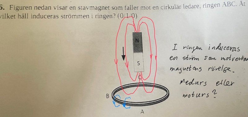 Hej! Behöver hjälp med att lösa denna uppgift. Jag vet att magnetfält går ut från nordpol och in i syd pol fast jag vet inte hur jag ska tillämpa denna information till uppgiften och lösa den