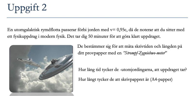 Du ska läsa ett kapitel som handlar om Speciell Relativitetsteori (kanske heter det bara Relativitetsteori i boken). Speciell relativitetsteori handlar om vad som händer när föremål rör sig väldigt snabbt - nära ljusets hastighet. Ledtråd: knasiga och oväntade saker händer, t.ex. förändras uppfattningen av tid och rum.
