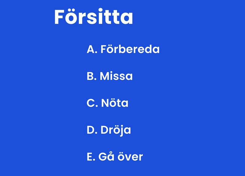 Man säger att man "försitter möjligheten", vilket betyder att man inte lyckas utnyttja möjligheten.