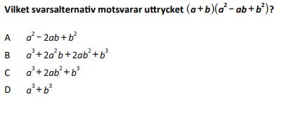 vilket savarsalternativ motsavara uttrycket (a+b)(a^2-ab+b^2)