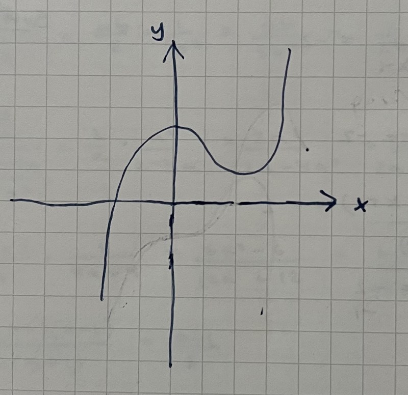 Att ekvationen f(x) = a endast har ett nollställe innebär att grafen bara skär x-axeln på en punkt. Se bilden nedan.