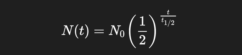 I den "svarta" formeln har beteckningar valts för att passa begreppet "halveringstid" t1/2. Det ser lite lurigt ut, med basen 1/2 för exponentialfunktionen som är <1 och därmed "tar bort" minustecknet i exponenten.