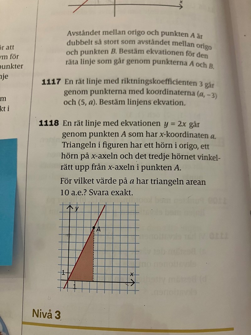 Det är givet i uppgiften att punkten A har x-koordinaten a.