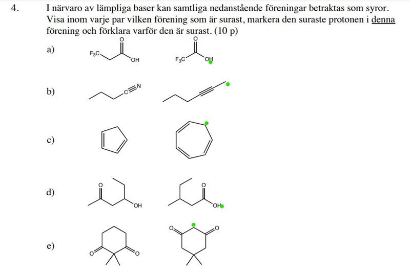 Jag har markerat de väten jag tror är surast med en grön prick, men det jag framförallt är osäker på är b.
