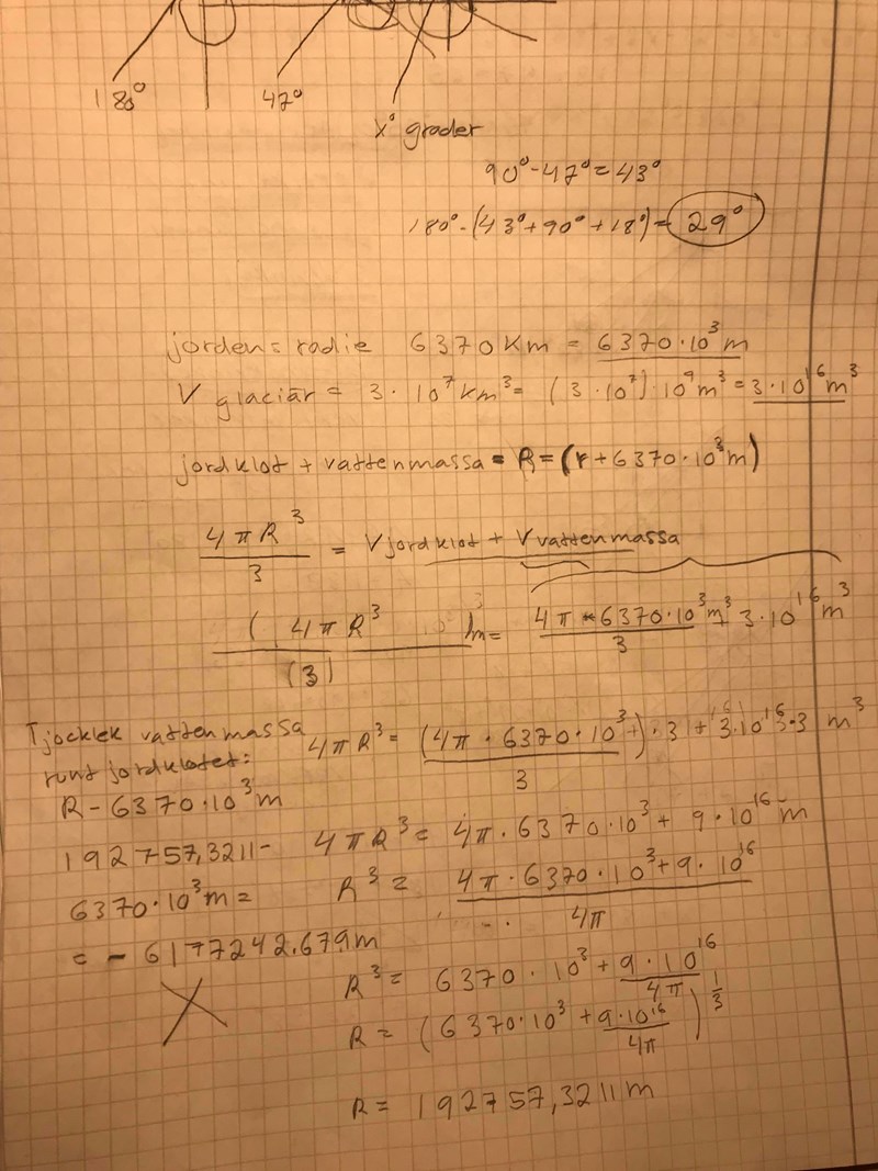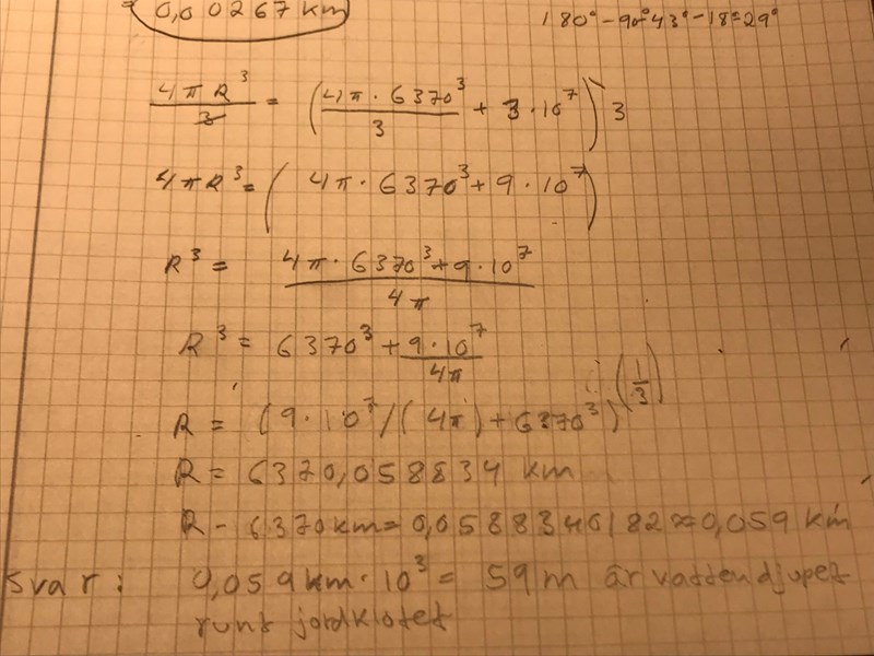 (Jordradien är 637 mil och för enkelhetens skull antar vi att is och vatten har samma densitet.)"