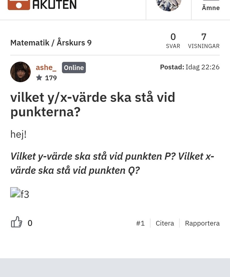 Vilket y-värde ska stå vid punkten P? Vilket x-värde ska stå vid punkten Q?