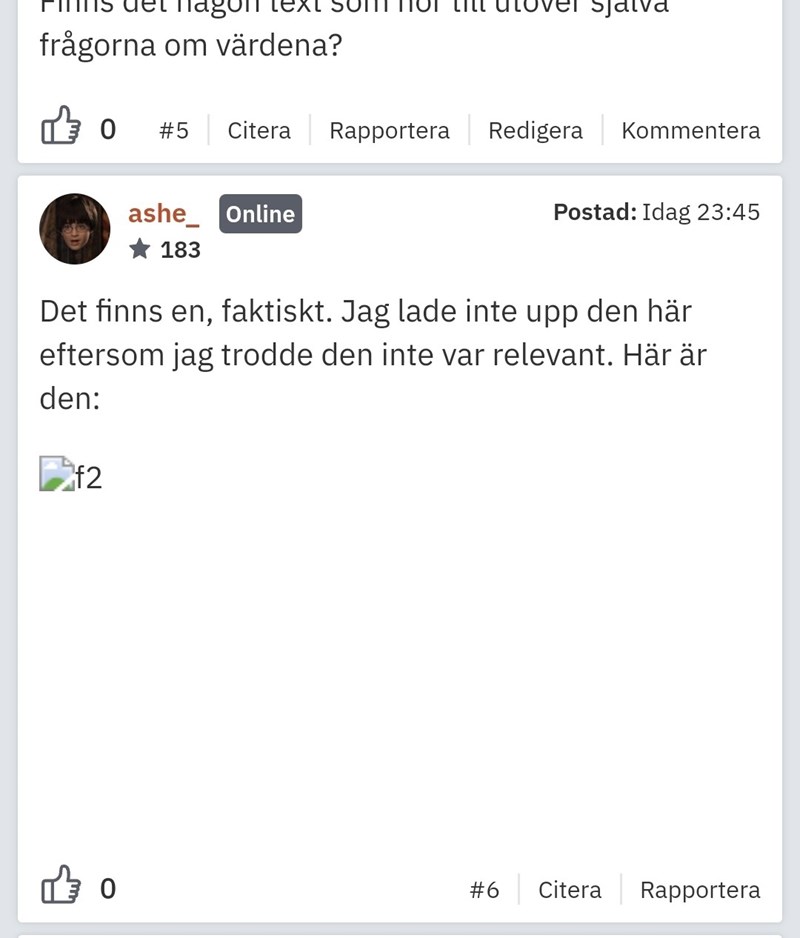 Finns det någon text som hör till utöver själva frågorna om värdena?