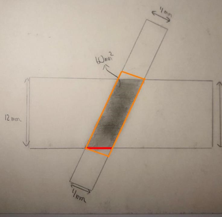 EDIT: den orangea rektangeln är överflödig. Uttryck parallellogramens area på två olika sätt så löser det sig nog.