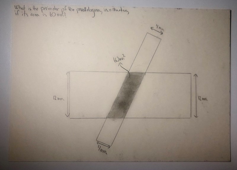 Jag ska ta fram omkretsen av paralellogrammet som är markerat med grått. Se nedan:
