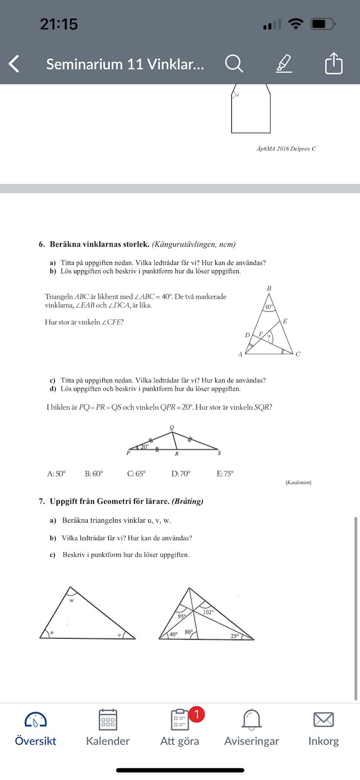 6b. Hur stora är basvinklarna i den stora triangeln?