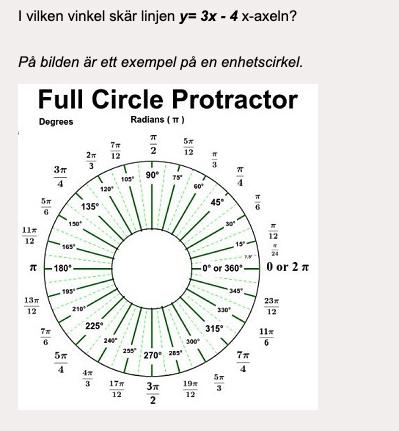Bilden i uppgiften är dock ingen enhetscirkel? Den visar bara storleken av olika vinklar i grader och radianer