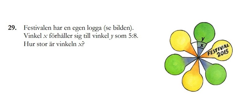 jag Tänkte först att y= 360/6 men är inte säkert.... Dessutom så vet jag att förhållandet x:y = 5:8