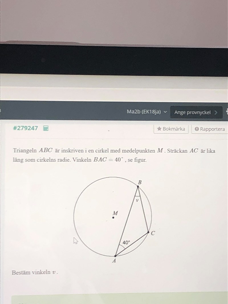 Pröva att även rita in radien MA.
