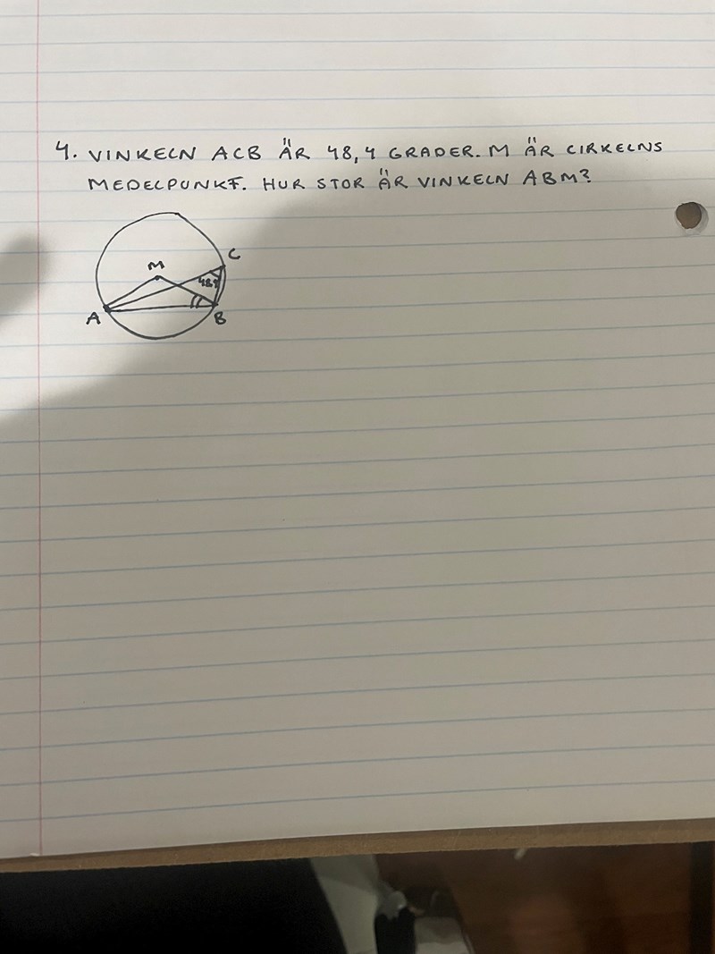 Frågan är hur stor vinkeln ABM blir, de är ju den triangeln? Tar jag då dem gånger varandra?