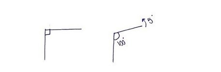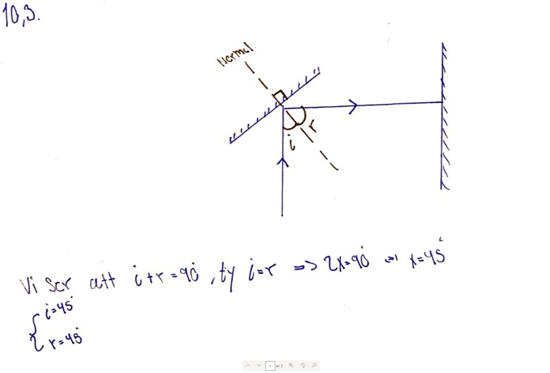 När spegeln är på sådant sätt att ljuset faller vinkelrät mot den raka väggen, kan man från detta förstå att i + r = 90 grader ty vinkelrät.