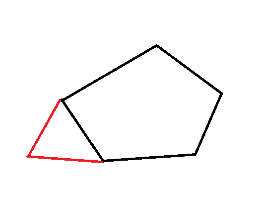 Om du utgår från en -hörning kan du skapa en -hörning genom att lägga till en triangel såhär (och sedan ta bort linjen som separerar triangeln och -hörningen). Hur många grader "läggs" då till till vinkelsumman?