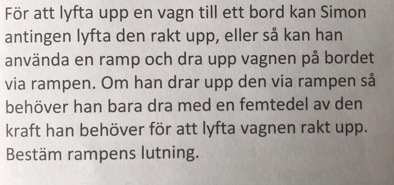 - Teckna ett annat uttryck för det arbete som krävs för att dra vagnen upp längs med rampen.
