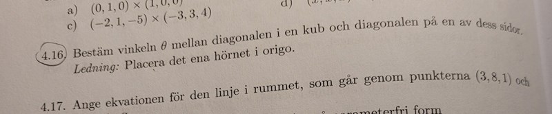 I uppgiften står: "vinkeln mellan diagonalen i en kub och diagonalen på en av dess sidor"