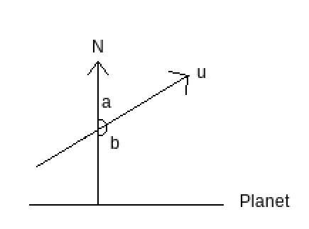 vinkel mellan vektor av typen (x,y,z) och normalvektor (till en triangelyta)