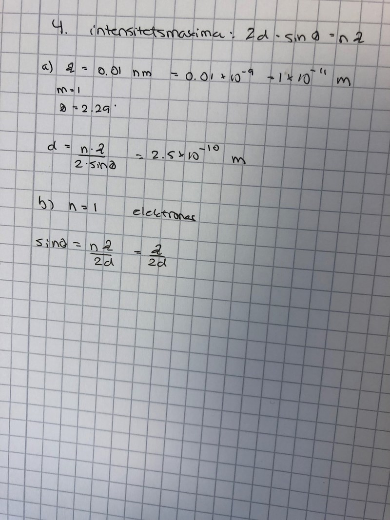 b)Vid vilken vinkel får man första odningens maxima om man istället anväder elektroner