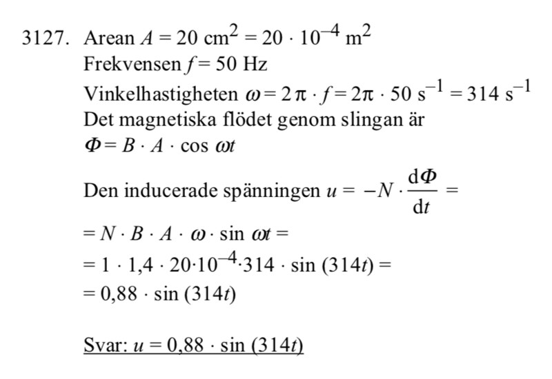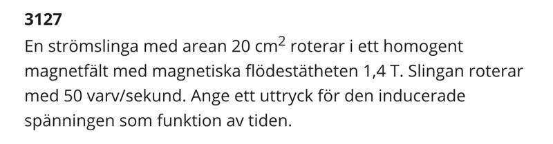 PS. Kan någon generellt refresha varför man behöver göra om vinkelhastigheten vid funktion av tid till trigonometri? Jag har hyfsad koll på enhetscirkeln och rad/s (2*pi = 360 grader osv). Men hade man inte bara kunnat ha B*A*w*t i första steget?