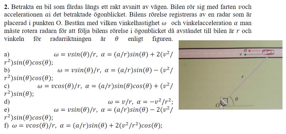 Försöker lösa följande problem med cylinderkoordinater men fattar inte hur de får fram svaret. Borde inte vinkelhastigheten vara roten ur? Och kan någon vänlig själ visa hur de kommit fram till svaret (som är a)?