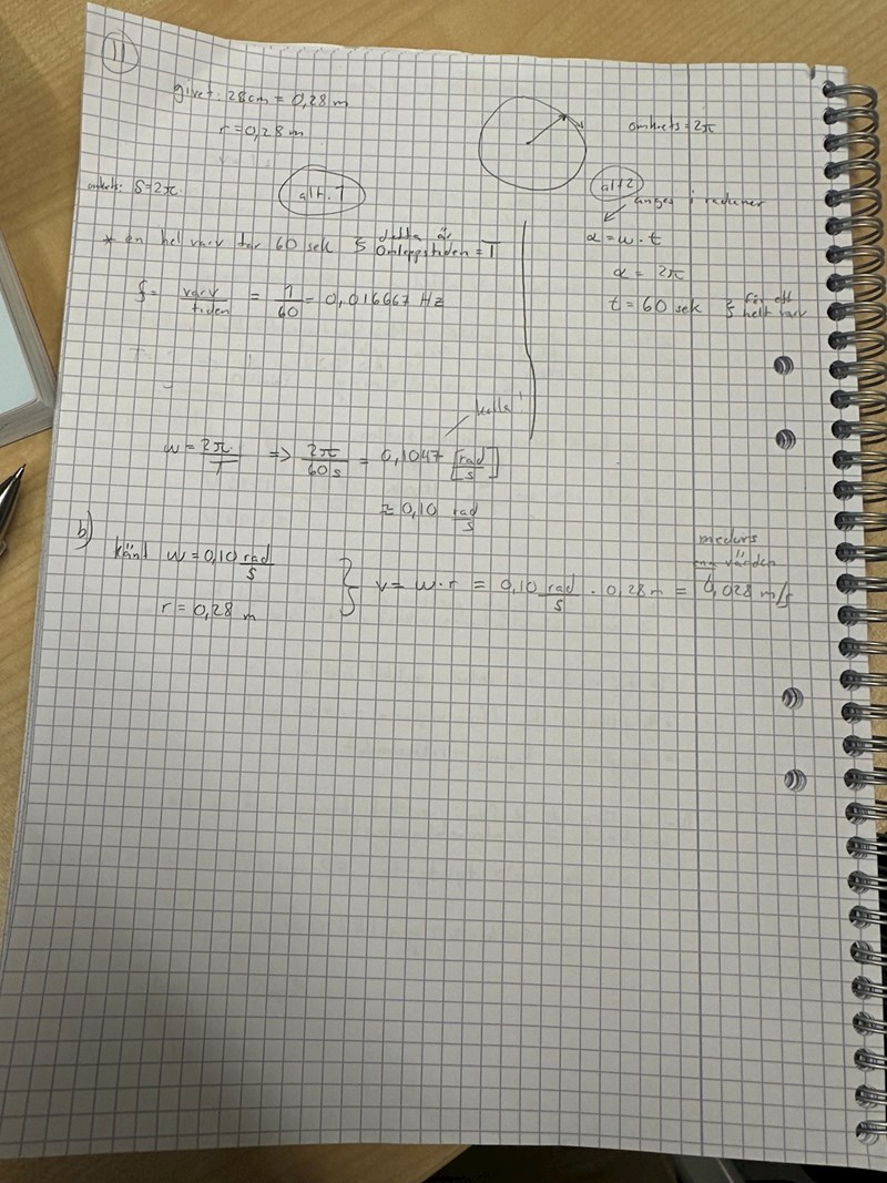 Jag skulle ta med mig ω=π/30 i beräkningen istället för ett avrundat värde. Lika lätt att skriva och exakt. Avrunda inte förrän du måste.