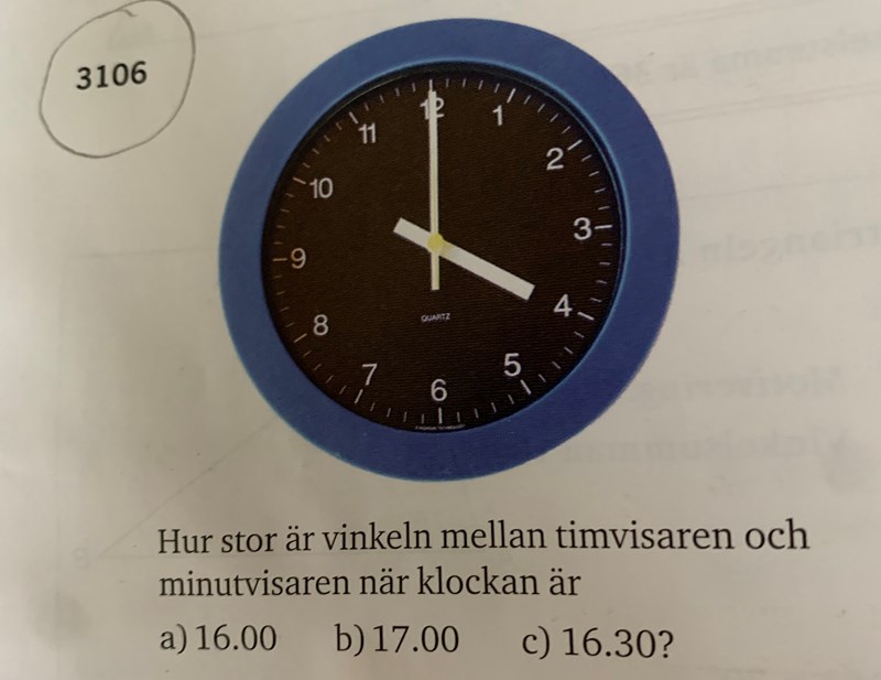 2. Fundera sedan över hur stor del sv hela varvet som upptas av visarna i de olika fallen.