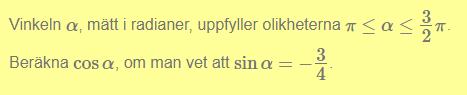 Vinkeln a mätt i radianer, uppfyller olikheten pi<=a<=3pi/4