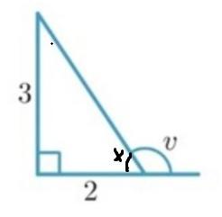 Där vinkeln v finns kan man väl inte använda sig utav Pythagoras sats eller trigonometriska formler (sin, cos, tan) pga den triangeln inte är rätvinklig?