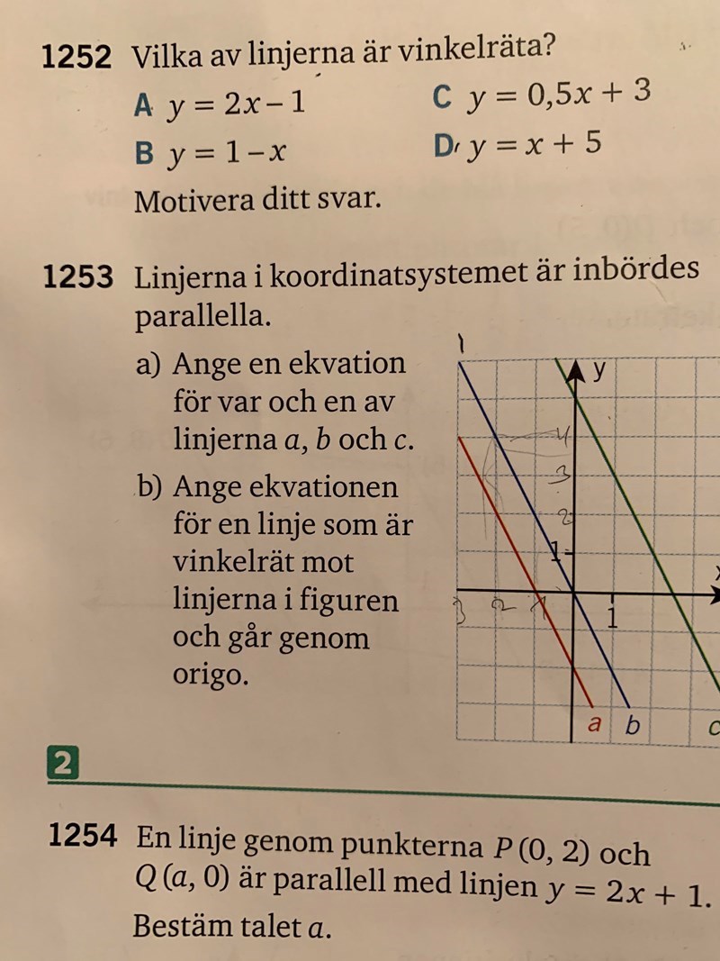 Hej! Förstår ej 1253 c. Jag testade att göra såhär: . Detta stämmer väl inte överens med regler för vinkelräta linjer? De ska väl alltid bli -1?