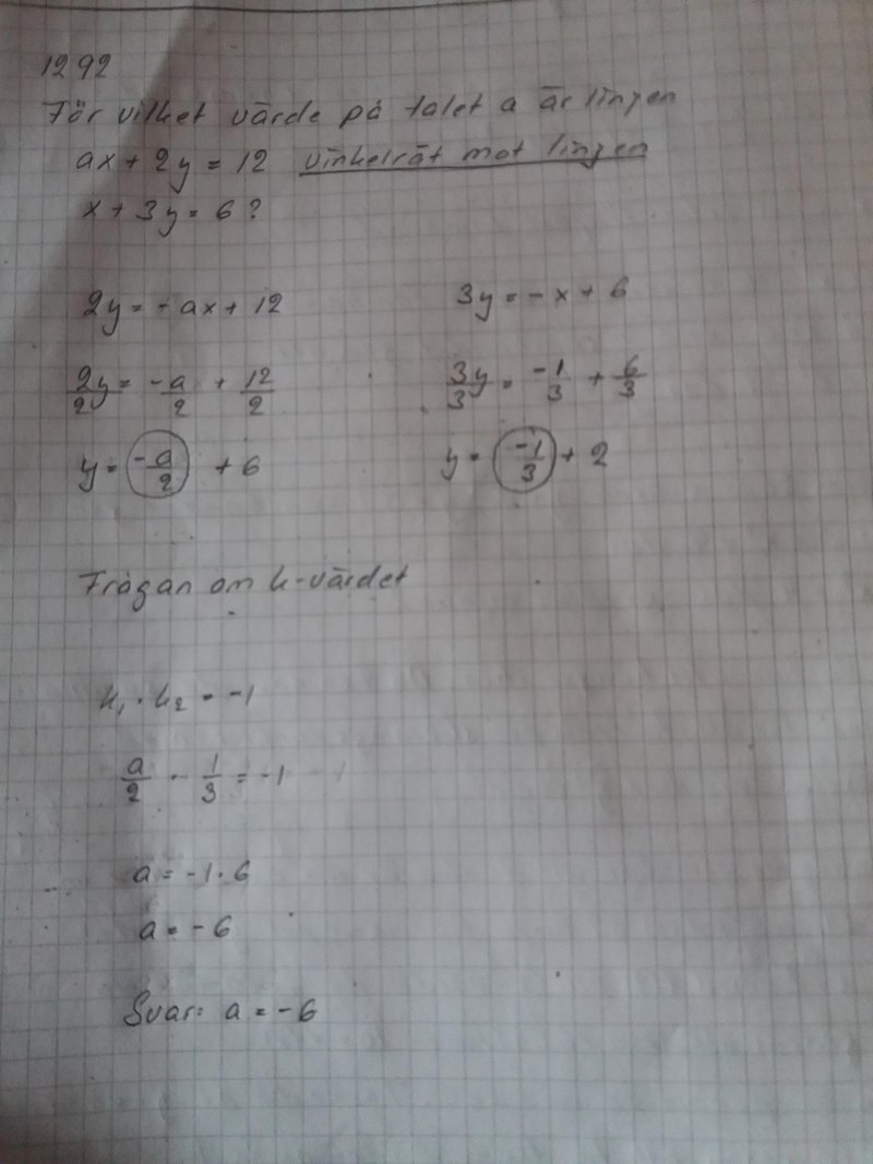 Men k1 × k2  =  -1   borde stå  -a2 × -13 = -1