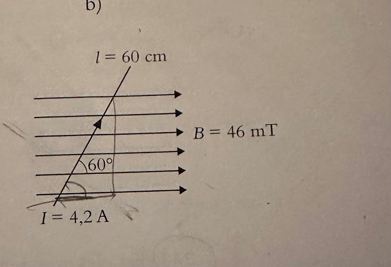 PATENTERAMERA skrev:Det sneda strecket är ledningen med ström. Vi kan dela upp B i en komposant parallell med ledaren och en komposant vinkelrät mot ledaren - se figur. Med trigg kan du räkna ut storleken på komposanterna.