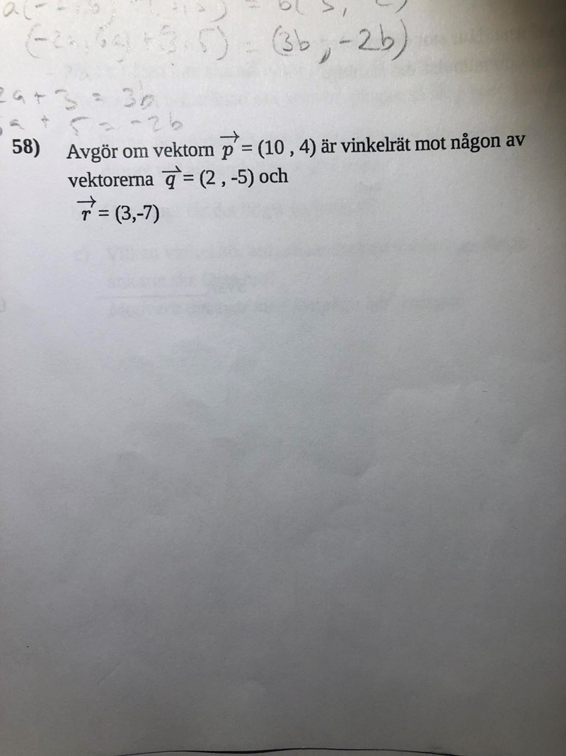 Jag har ritat vektorn p, q och r... Vad betyder vinkel rät? Betyder det att när linjerna skär varandra så bildar de 90 graders vinkel?