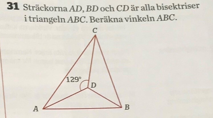 Vad är vinkeln vid B? Du har en triangel med de båda andra vinklarna a och 129.