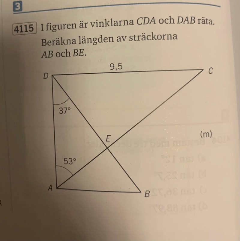 Börja med att se vilka vinklar du kan få fram. Summan av vinklarna i en triangel är 180.