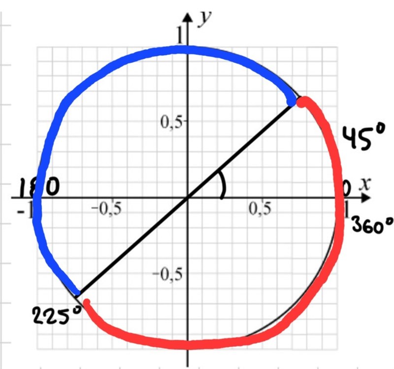 Hur vet man att y=x vid 45 grader och vid 225 grader? Finns det någon regel eller bevis?