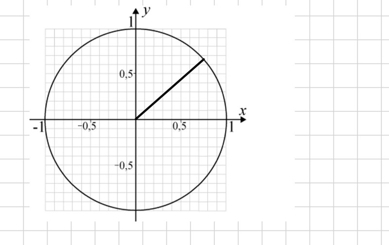 Du vet att sin(v) = cos(v) endast vid de två punkterna där linjen skär enhetscirkeln.