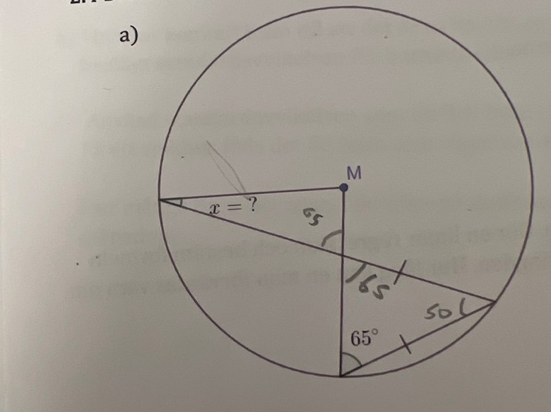 är inte x=65, ty den ligger på samma cirkelbåge som 65 graders nikeln
