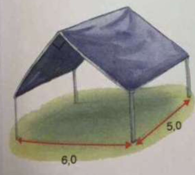 arean av ett område är 6x5 m. Ett tak ska byggas med vinkeln 90 grader. Hur stort måste taket minst vara för att täcka hela området så att det tex inte regnar in?