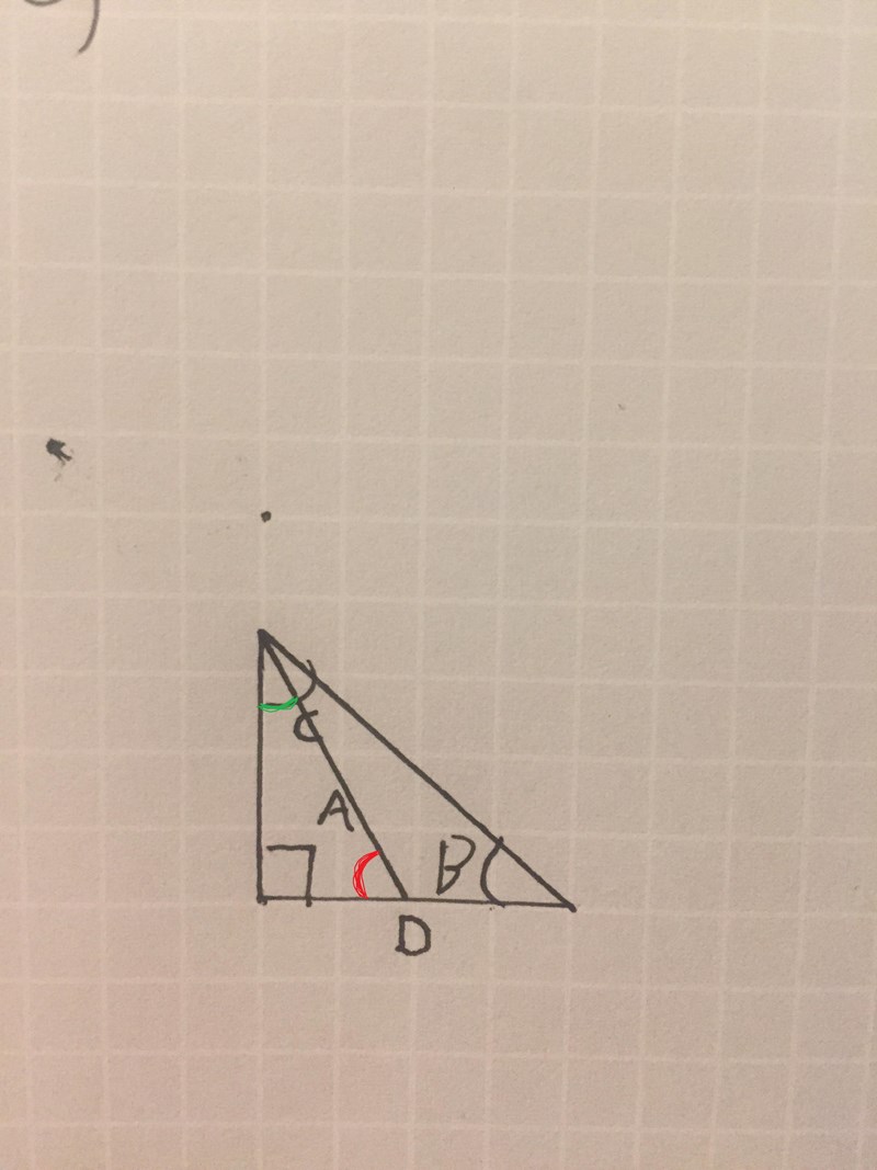 I uppgift a så tolkade jag det som den rödmarkerade vinkeln men det var visst den grönmarkerade som de ville veta.