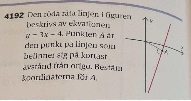 Du kan använda att den röda linjen är vinkelrät mot sträckan mellan origo och A.