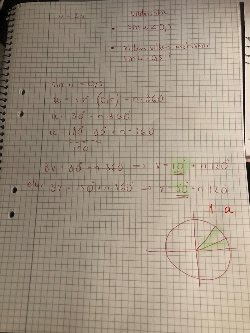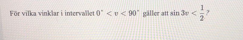 Om vi låter 0° u < 360° så gäller det att sin(u) < 0,5 uppfylls dels av vinklarna 0° u < 30° och dels av vinklarna 150° < u < 360°.