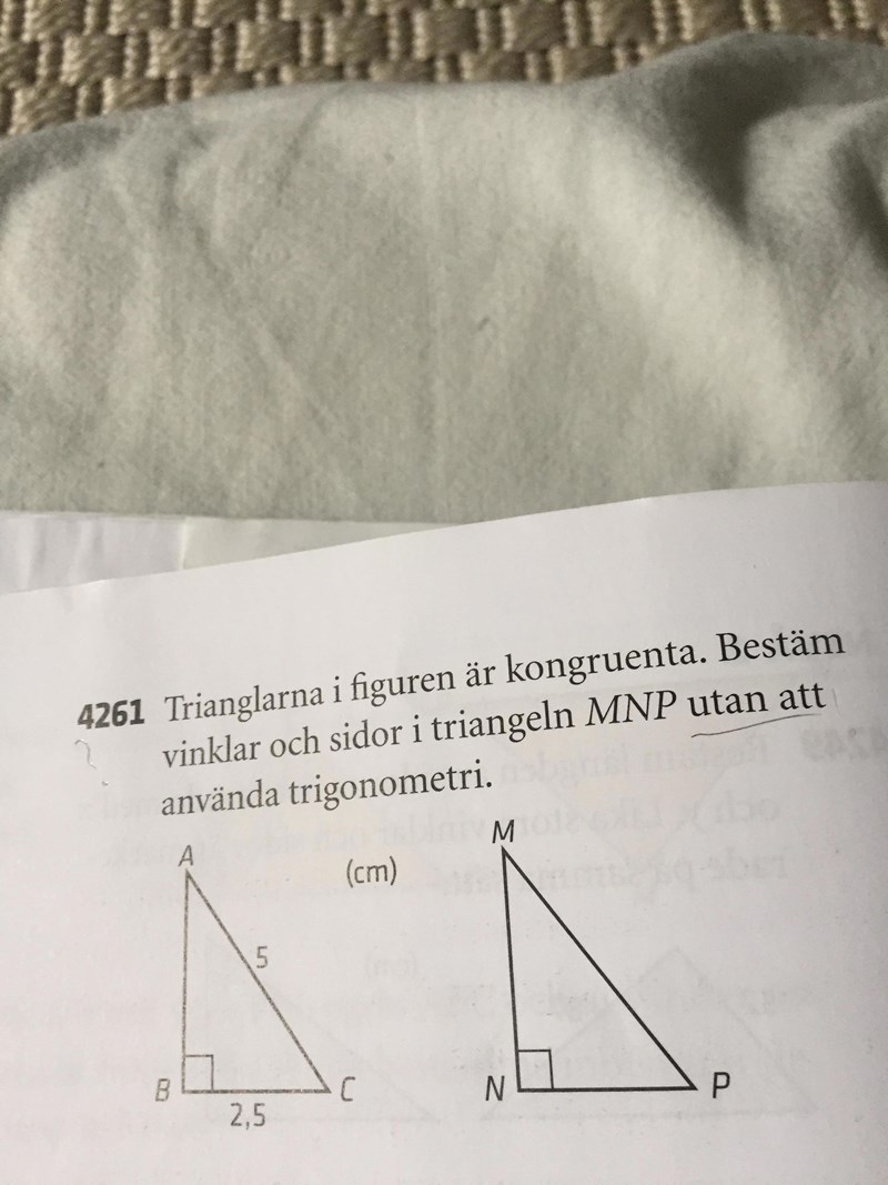 hur kan man ta reda på två andra vinklar i rätvinklig traingel som är kongruenta?