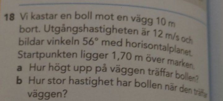 På den här uppgiften behöver jag rita en bild, jag vet inte hur jag ska rita bilden när det står att vinkeln är 56⁰ med horisontalplanet.