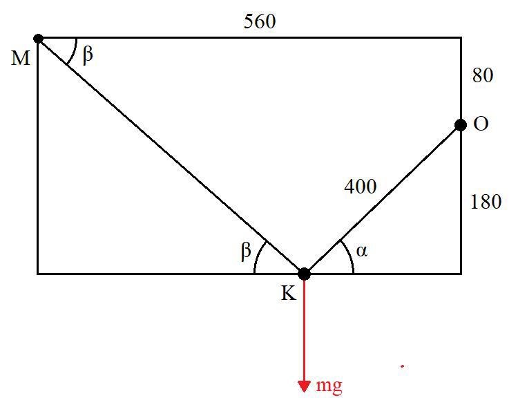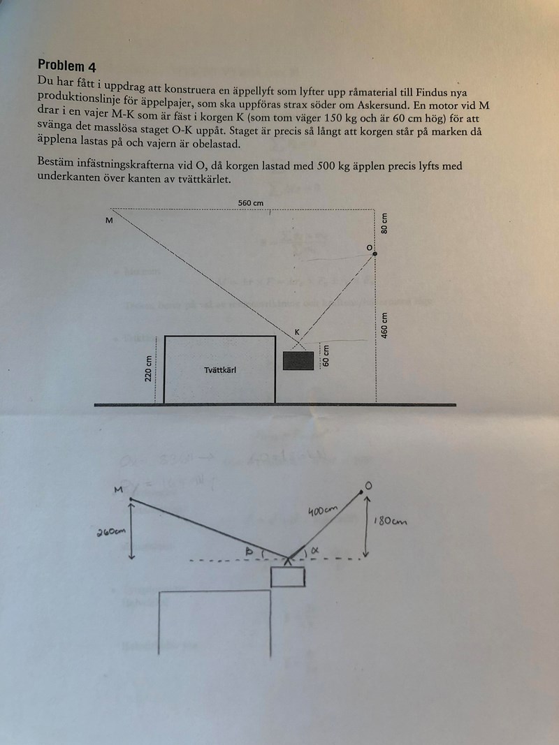 En notis: Din figur är fel. Punkten M är inte på samma höjd som punkten O (vilket är tydligt från längderna du skrivit in men du borde även rita det för att undvika förvirring).