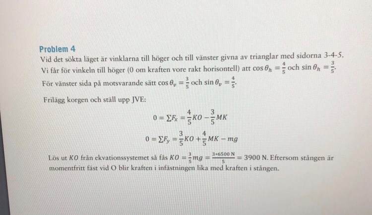 Jämviktsekvationer i horisontell led (x) och vertikal led (y) ger: