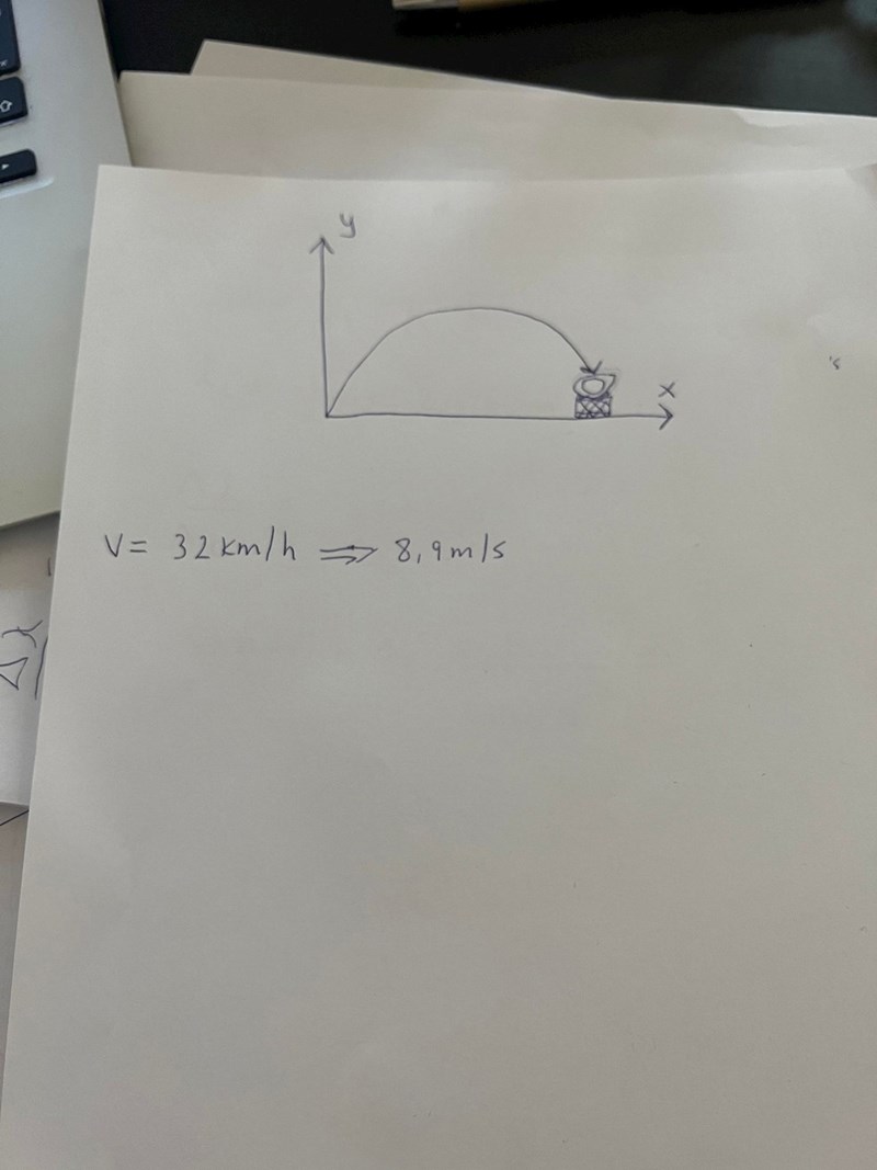 basketskottets hastighet 32km/h = 8,88 m/s