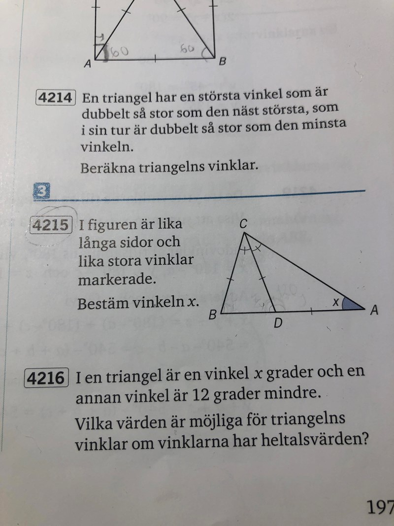 Två vinklar i en likbent triangel är lika stora. Kan du se vilka två det är i den högra halvan?