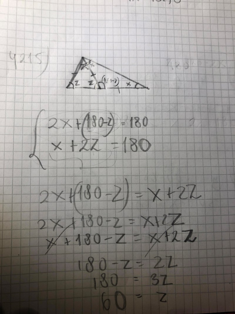 Men du vet att vinkeln BDC som du kallat z är 2x (yttervinkelsatsen). Så du behöver inga ekvationer.